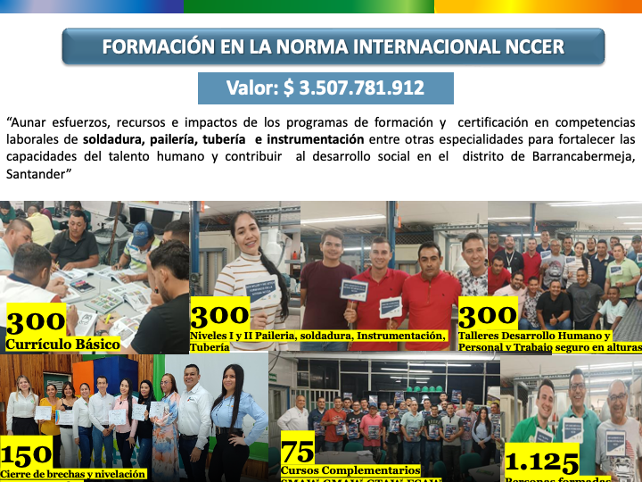 “Aunar esfuerzos, recursos e impactos de los programas de formación y certificación en competencias laborales de soldadura, pailería, tubería e instrumentación entre otras especialidades para fortalecer las capacidades del talento humano y contribuir al desarrollo social en el distrito de Barrancabermeja, Santander”